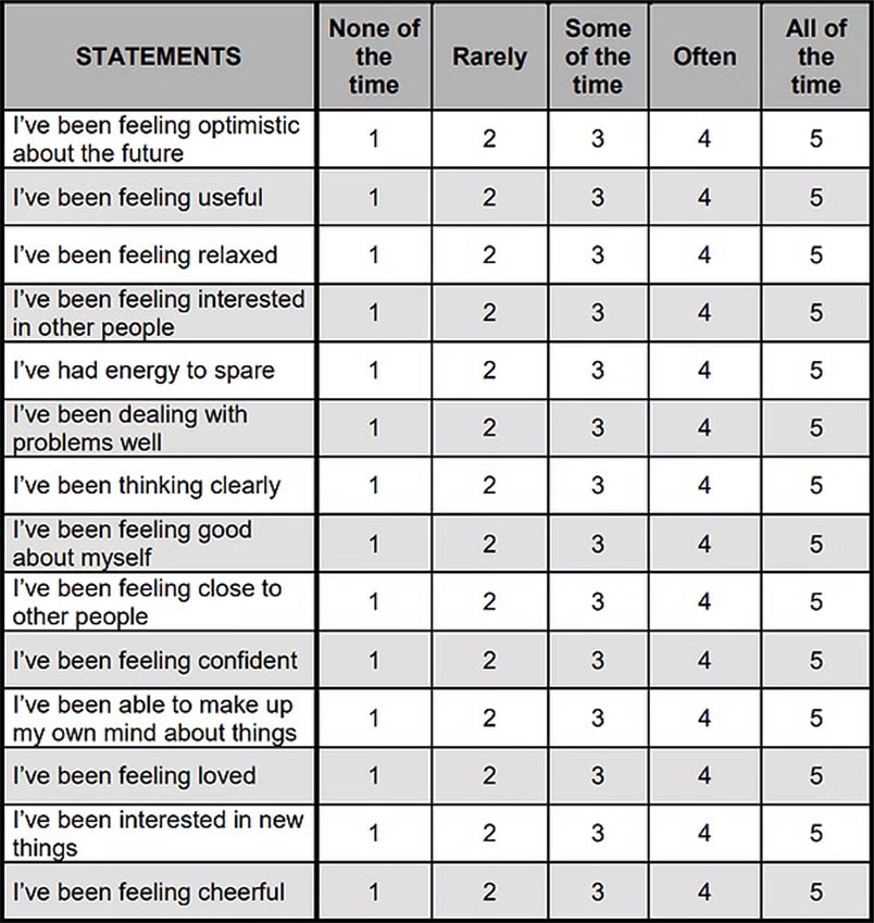 Please tick the box that best describes your experience of each over the last 2 weeks.